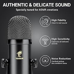 - Experience immersive ASMR recording with the TONOR ASMR Microphone Equipment Bundle. This professional-grade setup features two high-fidelity condenser microphones, delivering clear, stereo sound with a wide frequency response. The included audio interface offers easy volume control and mute functionality, along with adjustable left and right channel ratios for optimal balance. Compatible with macOS, Windows, and Android systems, this bundle includes USB and USB-C cables, desktop microphone stands, furry windscreens, and audio cables for a seamless setup. Capture every nuance of your ASMR content with this comprehensive, user-friendly microphone bundle.