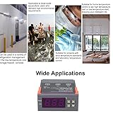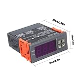 - Mini temperature controller with large and clear LED-display for better readability. Easy setting, easy to operate and use. It can be widely used for domestic freezer, water tanks, refrigerator, industrial chiller, boiler, steamer, industrial equipment and other temperature-controlled systems. Specifications: Model: MH1210W Material: Plastic Working Voltage: AC90V-AC250V Control Output: 10A/AC220V Temperature Control Range: -50℃~110℃ Temperature Measurement Accuracy: ±0.5℃ Control Accuracy: 1℃ Temperature Sensor: NTC=10K B3435 Working Temperature: 0℃-50℃ Storage Temperature: -10℃-60℃ Sensor Probe Cable Length: 1M/3.28ft Item Size: approx. 85 * 70 * 28mm / 3.35 * 2.76 * 1.10in Package Size: approx. 100 * 85 * 50mm / 3.94 * 3.35 * 1.97in Package Weight: approx. 114g / 4.02ounce Package List: 1 * Digital Temperature Controller 1 * Sensor Probe