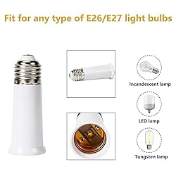 - Extend your lighting possibilities with our E26 Socket Extender! At 4.72 inches (12 cm) in length, this adapter is perfect for lowering bulbs in recessed fixtures, allowing light to disperse in 360 degrees and brightening up your space. Made from flame-retardant and environmentally friendly PBT, it ensures durability and high-temperature resistance. Each pack includes 4 extenders, suitable for a wide range of E26/E27 lamps, including LED.