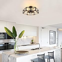 Industrial Ceiling Light: The industrial ceiling light fixture features a hexagonal metal cage in a matte black finish, offering a modern farmhouse look. When you turn on the flush mount ceiling light, the ceiling will show a beautiful pattern and bring enough light. The close to ceiling light fixture complement any décor from industrial to farmhouse adding vintage touch to your space Standard E26 Base: This dining room light fixture have passed UL LISTED for safety to use. The ceiling light for hallway with anti-oxidant, non-fading. The semi flush lighting fixtures with standard E26 socket, compatible with LED, incandescent, or CFL bulbs (60W Max/Light, BULB NOT INCLUDED). This hallway light fixtures ceiling also compatible with dimmer bulbs and dimmer switch (not included) Easy To Install: This 6 light ceiling light fixture: 7.28" height × 19.68" width, Canopy:4.72" diameter x 0.98" . Black flush mount ceiling light including all hardware and instruction that make the installing easy and quick Wide Applications: This farmhouse light fixtures ceiling mount mixes traditional style with modern geometric shape. The elegant semi flush mount ceiling light can be used as kitchen ceiling lights fixtures, hallway light fixtures, dining room light fixture, foyer ceiling light fixtures, kitchen light fixture. The black flush mount light fixtures with an open geometric cage design that allows the light to reach the entire area and exude a comforting country glow Outstanding Service: We promise 100% return and refund policy, if you have any question about the flush mount ceiling light, please feel free to contact us directly by E-mail, we will work with you to resolve the issue within 24 hours online