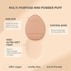 docolor Flat Foundation Brush for Liquid Makeup - 2Pcs Mini Powder Puff Set Premium Korean Makeup Brush for Blending, Cream Portable Finger Puffs Perfect for Under Eye Setting, Concealer