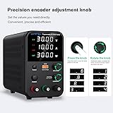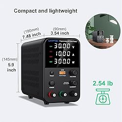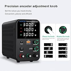 【Highly Accurate Encoder Adjustment】The WANPTEK POWER DC power supply is more precise and convenient than traditional knobs. Just press the voltage or current encoder knob to switch between each digit, and then turn the knob to set each digit in the range of 0-9, you can directly and accurately set the voltage or current you want. 【Output Enable/Disable Button】In the process of using the variable power supply, you can adjust the voltage and current you need by pressing the output button at any time. This design can prevent you from damaging the appliance because you forget to disconnect the output. Effectively improve your experiment efficiency. 【Short Circuit Alarm】 When the OCP function is turned on,if the load equipment fails and short-circuits, the adjustable dc power supply will emit a buzzer alarm. Prevent excessive output current from damaging the load equipment. In addition, it has multiple protections, such as grounding wire, leakage protection, thermal protection, voltage overload, power supply overload, etc. 【USB Fast Charging Port】The lab power supply is configured with an 18W fast charging port. No more mplaining about mobile phones or repaired devices not being charged in time. The WANPTEK POWER dc power supply will charges your devices quickly anytime, anywhere. 【Compact Body & Lightweight】The variable dc power supply size is 7.48 x 3.54 x 5.90 inch, Weight is 2.46 lb.It saves space on your workbench and can be moved around without any frustration. Package included: 1 x Wanptek DC Power Supply, 1 x Output Power Cord, 1x Input Power Cord, 1 x User Manual.
