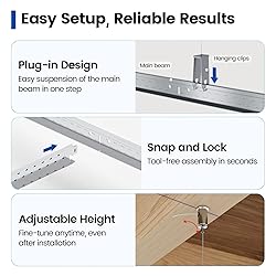 Complete Set: We offer a complete set of Drop Ceiling Grid Systems include 6pcs main beams TT00, 16pcs cross tee TT10, 6pcs wall molding TT20, 14pcs Installation Kit TA00. Tip: The package does not include PVC panels. If you need, we recommend purchasing it with our Muzata PVC ceiling tiles TBP0 Safer and Lighter: Our galvanized steel drop ceiling grid system is lighter and safer than traditional wooden ceiling systems. Not prone to collapse and fire hazards, ensuring the safety of your family Durable and Long-Lasting: These ceiling tees are made of high-quality galvanized steel, which is durable and long-lasting. Add white premium paint texture on the bottom to provide a modern style to your home or office Versatile Applications: These white galvanized steel tees are compatible with a variety of ceiling tiles and grid systems. Whether for residential, commercial, or industrial use, our tees offer a reliable foundation for any type of ceiling installation Easy installation: Our ceiling system has a snap-in design that doesn't require too many screws. Saying goodbye to the trouble of the traditional ceiling system, the novice can also easily install