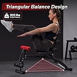 【Ergonomic Design for Maximum Comfort】The ab machine bench features an ergonomic design that ensures optimal comfort during abdominal and leg workouts. Its contoured shape and cushioned surface support proper body alignment, making your exercises more enjoyable and effective. 【Adjustable Length for All Users】With four adjustable length settings, this ab work chair is perfect for users of all sizes. Whether you're tall or short, you can easily customize the bench to suit your needs, making it ideal for the entire family. 【Safe and Stable Structure】Designed with a triangular stability structure and a reinforced steel frame, this ab trainer offers exceptional stability and prevents wobbling during use. Once set up, you can easily switch between different exercises by inserting or removing the pins. 【 Enhanced Cushioning and Foam Roller】The fitness bench features a thickened seat cushion and soft foam rollers, providing extra comfort throughout your workout. 【Supports Up to 300 Pounds】Built to support up to 300 pounds, this Exercise Chair is suitable for a wide range of users and workout types.