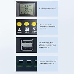 ADVANCED MPPT TECHNOLOGY: MPPT solar controller, using advanced MPPT maximum power point tracking technology algorithm, automatic recognition of 12V 24V 36V 48V; It can quickly track the maximum power point of the photovoltaic array in any environment, with a tracking efficiency of no less than 99.5%. Significantly improved the energy utilization efficiency of solar energy systems. MULTIFUNCTIONAL DESIGN: MPPT solar charging controller, with backlight display and clock display multifunctional LCD, 7 working modes, charging mode, light control mode, light and delay control mode, universal control mode, manual control mode, timer control mode. VOLTAGE GUARD: The solar panel controller has voltage for MPPT solar controllers, including battery overvoltage and overcurrent , power failure , overcharge , deep discharge , reverse connection , and overheating temperature . USER FRIENDLY DESIGN: The LCD display of the solar panel controller is designed to dynamically display the operating data and working status of the device. Controller parameter display (working mode, battery voltage, photovoltaic charging current, battery discharging current, product operating temperature, delay time). MULTIPLE BATTERY CHARGING OPTION: The MPPT solar charging controller has multiple battery charging options and is compatible with Seal, GEL, Flood, and LifePO4 battery charging. Dual USB 5V charging ports.