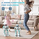 【INTELLIGENT PROGRAMMABLE】: You can preset up to 50 action commands using the remote control, allowing the robot to accurately execute each of your instructions and show a flexible and varied posture 【GESTURE-SENSING CONTROL】: In addition to remote control, this intelligent robot also supports gesture recognition, allowing simple gestures to command the robot to slide forward, backward, turn left, and turn right, greatly adding fun to the interaction between children and robots 【RECORDING AND FUN VOICE CHANGER】: The robot has a recording function that can record your or your child's voice for up to 15 seconds. What's more exciting is that you can choose 4 different voice changing effects to play the recording through the remote control, allowing it to speak with the voice you want, adding laughter to your life 【SINGING AND DANCING PERFORMANCES】: The robot with flexible arm joints has multiple tracks built in, and can perform diverse dance moves based on different songs and styles, accompanied by 4 lighting effects, allowing you and your child to immerse in a wonderful music world together 【CONVENIENT CHARGING AND LOW-POWER PROTECTION】: This remote-controlled robot toy supports USB port charging, which can be fully charged in just 1 hour, providing approximately 60 minutes of use time. If no command is received within two minutes after entering the standby mode, the robot will automatically enter a sleep state to conserve power and ensure that you and your child can enjoy a more prolonged interactive experience. (Note: The remote control does not include batteries) 【SAFE MATERIAL AND IDEAL GIFT】: This robot toy, crafted from ABS material, boasts a stylish appearance and is suitable for boys and girls aged 3 to 12. Whether it's for Christmas, birthdays, or other holidays, it's an ideal gift for children and will surely bring endless joy and surprise
