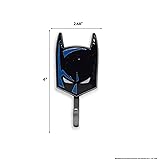 Warner Brothers licensed product: Upgrade your wall with a touch of the Dark Knight’s mystery and practicality! Featuring the iconic top half of Batman’s mask, complete with those unmistakable pointed ears, this piece is both bold and functional. Fun Vintage Wall Hook: With a sleek blue and black color scheme highlighted by a metallic silver outline, it's as bold as the Dark Knight himself. The sturdy silver hook adds a useful touch, perfect for hanging your cape - or maybe just your keys. Let this hook define your space with a dash of superhero flair! Material: This practical and exiciting wall hook is made of durable cast metal, and it features enamel details for an eye-catching look. Hanging hardware is included for effortless wall display. Places to Use: Make a practical addition to your collection of superhero decor when you incorporate this decor into your man cave, home theater, or teenager's room. Size: 2.68" W X 6" H X 1.5" D