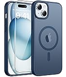 FNTCASE for iPhone 15 Case: for iPhone 14 & iPhone 13 Case [with Screen Protector] Magnetic Translucent Matte | Military Grade Drop Protection | Shockproof Phone Cover Protective Cases - Blue