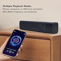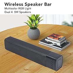 Immersive Sound Experience: This soundbar features dual 4Ω 5W speakers design, providing exciting stereo sound effects. Whether at home or at a party, music can surround every corner, bringing an immersive auditory feast. Multicolor RGB Light: This speaker is equipped with colorful RGB light effect that change colors with the rhythm of music, adding a dynamic ambiance to your home space. Whether it is dinner or a party, it can become the visual focus. Multi Modes Connection: This speaker supports multiple playback modes such as BT, USB, AUX, and small memory card (not included), allowing you to easily connect your smartphone, computer, or USB flash drive and enjoy lossless music playback. HD Sound and Low Distortion: This soundbar has a wide frequency response range of 20Hz to 20kHz, with high signal to noise ratio and low distortion, ensuring that every melody is clear and delicate, presenting you with authentic music details. Battery Powered: Built in 1500mAh lithium ion battery, it ensures uninterrupted power supply for long term playback, whether it is outdoor picnics or indoor gatherings, without the need for frequent charging, allowing for uninterrupted fun.