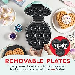Snack-Sized Treat Maker: The Dash MultiMaker️ Treat Maker System delivers delicious desserts in minutes with an interchangeable Plate System for mini cupcakes, mini donuts, and heart-shaped waffles Easy Cleanup Every Time: The Removable Plates and nonstick cooking surface ensure this fast Dessert Maker is a breeze to clean for everyday use Creative Baking Made Simple: With the plug-in bake system and recipe guide included, this multi-dessert Maker is a unique gift kitchen device for aspiring bakers and party hosts Compact & Kid Friendly: The Mini Cupcake Baker is perfect for small portions, making homemade sweet bites easy and fun right on your countertop Happiness Is Homemade: Dash products invite families to gather together for the joy of cooking and eating at home