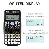 【417 Calculation Functions】: The scientific calculators has 417 different calculation function built-in, including trigonometric function, exponential function, logarithmic function, calculus, statistics, algebra, and other advanced mathematical functions. It also supports complex number calculations, matrix calculations, vector calculations, etc., and can meet the various scientific and engineering calculation needs Large Screen Four-Line Display: The scientific calculator adopts a four-line large screen design, which is convenient for users to read. It also supports the natural display, which can directly display the input and output of mathematical formulas on the screen, making complex calculations more intuitive.The key SHITT -MODE (SETUP) DOWN -6( LEFT Continue RIGHT ).Use LEFT and RIGHT to adjust screen brightness Dual Power: This calculator has a built-in solar panel and durable battery, which can be used continuously for many years in indoor and outdoor environments, reducing the frequency of battery replacement and making it more economical. This also makes it the best choice for people who need to use it for a long time, such as school supplies, high school students, accountants, and non-programmable calculators Multi-Functional Keyboard: The calculator has a keyboard with many scientific symbols and function keys built-in, making it easy to perform various calculations and functions. Especially for people who need to perform scientific calculations frequently, this keyboard design can greatly improve their calculation efficiency, such as teachers, engineers, college students, nurses, and accountants The Best School Supplies: This calculator is very suitable for students in elementary school, junior high school, high school, college, engineers, nurses, and teachers, etc. It can meet their calculation needs in the fields of mathematics, science, and engineering, and help them better understand and apply knowledge. Therefore, as a gift, it can be given to these people who need to perform scientific calculations.𝐂𝐎𝐍𝐓𝐀𝐂𝐓 𝐔𝐒 𝐅𝐎𝐑 𝐄𝐋𝐄𝐂𝐓𝐑𝐎𝐍𝐈𝐂 𝐔𝐒𝐄𝐑’𝐒 𝐆𝐔𝐈𝐃𝐄