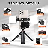 Portable Mini Tripod: Mini desktop tripod is made of Metal and ABS Plastic, top quality, solid and portable. The extendable mini phone holder tripod with non-skid rubber feet, offers maximum stability for your devices, allowing you to capture stunning photos anywhere Equipped with EX390 Phone Tripod Mount: Mini tabletop tripod stand handle with EX390 phone mount adapter. 360 ° rotating smartphone stand equipped with 2 side cold shoes and 1 rear cold shoe, as well as a 1/4-inch expansion hole design, allowing you to connect additional LED lights, microphones, or other movie devices. It can help you shoot stable videos for Facebook, YouTube, platforms, and live channels 1/4" Screw & Wide Compatibility: The small tripod with the standard 1/4 screw, allows a variety of devices to be mounted, such as digital SLR cameras, action camera, webcam, mini projector, monopods. The universal smartphone phone holder fits cellphone within 6.7inch, compatible with iPhone 12/12 Pro/12 Pro Max/11/11 Pro/11 Pro Max/X/Xs/XR/Xs Max, 8/7/6/6s iPhone 6/6s plus, iPhone SE, Galaxy s10s10 plus S9/S9+ Arca Quick Installation System: The EX390 phone holder base with Arca type dovetail can serve as a quick release plate, sliding into any tripod head and video head compatible with the Arca Swiss installation system for easy installation Lightweight & Pocket Size Design: This mini tripod for camera extendable from 110mm to 165mm, and super convenient to carry and fold up to store easily, you can just slip it into the pocket. Pocket tripod only weight 0.4 lb. with a foldable height of 4.3 inches, easy to carry when traveling, hiking, or camping