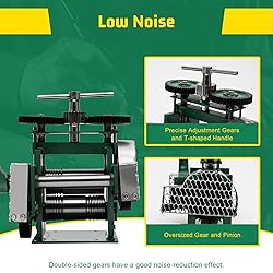 【Three-in-One Rollers】: The rollers of jewelry press with three-in-one performance can press gold and silver into multiple sizes of sheet, square wire, and semicircle. And they are also easy to change to satisfy your different requirements. 【Sturdy and Durable】: This rolling mill machine is made of 55HRC steel rollers with heat treatment process and has a high-quality cast iron hand crank and A3 steel frame with spray paint, which is not easy to deform after long-term use. 【Labor Saving Design】: The reduction gear ratio of 3:1 allows the rollers to make one complete turn for every three turns of the rolling mill handle and also the pinion drives the oversized gear, which both can relieve the amount of force needed to operate the rolling mill. 【Adjustable Press Thickness】: The distance between the rollers can be precisely adjusted within 0.7inch through the T-shape gear handle to suit different usage scenarios. 【Safe to Use】: The gear covers are made of high-quality A3 steel on both sides of the machine and are designed to protect you from hidden danger under standard operation. Screw holes are provided at the base of this manual rolling mill machine to fasten it on your workbench, allowing it to work steadily.
