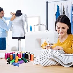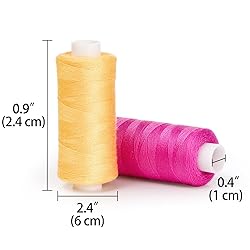 Value Pack Sewing Threads Kit: Package includes 60 spools polyester thread, 400 yards per spool, total 24000 yards. Multiple colors and sufficient quantity are great for sewing machine, hand sewing, hand quilting and embroidery Unit size: 0.9"/2.4 cm dia. x 2.4"/6 cm H, the hole is 0.4"/1 cm dia.; The great size for both sewing machine use or hand use, also easy and convenient for travel with Well Selected Colors: 10 of yellow, 10 of blue, 10 of pink, 10 of gray, 10 of green and 10 of used most colors, some popular colors may duplicate. Multiple and well selected colors allows you to pick and choose according to your preference and project requirements High Quality All Purpose Threads: Made of polyester, smooth and durable, wear resistant, won't break, fraying and tangling up easily. The plastic reel also is not easy to deformation, this thread ensures strong stitching and long-lasting results Versatile Use: Great sewing thread assortment for daily sewing and embroidery projects, hand sewing, cross-stitch embroidery, DIY manual projects, personalized fashion sewing, weaving, quilting to decorate pillows/towels and clothes, etc.