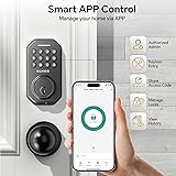 VCHOO Keyless Entry Door Lock with Handle, App Control Door Locks for Front Door, Auto Lock Keypad Door Lock with Handle, Smart Door Lock for Home Hotel Bedroom with 2 Door Knobs