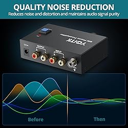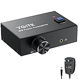 【Premium Phono Preamp for Turntable - Converts & Amplifies Signal】This compact phono preamp for turntable converts delicate phono signals to robust line-level signals,allowing you to connect any turntable to modern audio systems without a dedicated phono input 【Ultra-Low Noise Operation for Pristine Sound Quality】Engineered with advanced low-noise operational amplifiers,this turntable preamp delivers exceptional clarity with a maximum output of 2V (PP) at 10K ohms.To minimize interference,place it close to your turntable—perfect for audiophiles who demand silent,noise-free listening 【High Performance and Grounding Design】Our Phono Preamp delivers pristine sound quality with a remarkable Signal-to-Noise Ratio (SNR) of ≥68dB.A grounding rod is designed to protect your turntable and eliminate potential buzzing noises.Its advanced low-noise processing circuit ensures a tranquil listening 【Convenient Power Switch & Volume Control】Unlike basic preamps,ours features a front-mounted power switch for easy on/off control—no more unplugging.Plus,the intuitive volume knob lets you fine-tune audio levels effortlessly,making it both user-friendly and durable for daily use 【Gold-Plated RCA + 3.5mm Headphone Output for Enhanced Connectivity】Equipped with gold-plated RCA inputs/outputs and a built-in 3.5mm headphone jack,this preamp ensures superior signal transfer and corrosion resistance.Connect to speakers,amplifiers,or headphones simultaneously for versatile listening options 【Certified 12V Power Adapter & Sturdy Build for Reliable Performance】Includes a certified 12V power adapter for stable,consistent power—reducing the risk of distortion or low volume issues reported in other preamps.The solid metal casing and anti-slip pads add durability and stability on any surface 【Package Content】You will get 1 x phono preamp, 1 x12V power adaptor, and 1 x user manual