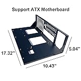 Open Chassis: This product adopts an open design, with heat dissipation holes designed at the power supply position. The wide body design increases the distance between graphics cards, ensuring good heat dissipation and facilitating installation, use, and cleaning Material Quality: The motherboard material of this product is 0.8mm SPCC steel plate, the surface is baked with black sand grain paint ATX Parameters: 17.32x10.43x5.04 inches, weighing 2.09lb; Supports motherboards within 12.01x9.65 inches(ITX/MATX/ATX motherboard); Power Supply: Standard ATX power supply, reference size 150mm * 86mm * (140-250) mm; Supports SSD * 2 and HDD * 1 DIY: According to the motherboard model, the length and width of graphics cards are not limited;Simple parts and installation steps provide users with the fun of DIY