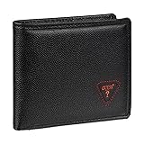 GUESS DESIGN: This Guess Passcase wallet offers a streamlined design without sacrificing storage - this compact wallet embodies the classic fashionable style GUESS is known for. STYLE: The front cover features an embossed triangle with GUESS printed logo - staying true to the iconic GUESS style. AMPLE STORAGE: This wallet provides multiple card slots, flip-out clear ID window and full-length bill compartment, keeping your essentials organized and accessible. PERFECT GIFT: Packaged in a sleek gift box, this wallet makes for a thoughtful, stylish present. Ideal for holidays, birthdays, or any special occasion. Bifold wallet measures 4.3"L x 0.4" W x 3.5" H. RFID TECHNOLOGY: Crafted with an interior lining of RFID blocking fabric, this wallet is designed to help shield credit card and personal information