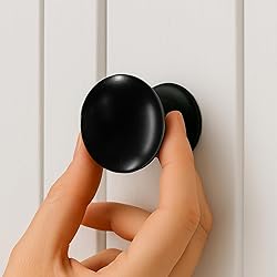 RENOVATION READY(WIDE BASE): The 1-1/3 inch Wide Backplate is specifically designed to hide paint lines, cover old screw holes, and conceal wear marks left by previous hardware, making your renovation simple and cost-effective. MODERN MATTE BLACK AESTHETIC: Featuring a clean, non-reflective surface, these knobs offer a refined touch that complements contemporary, farmhouse, and traditional interiors. The premium coating is specifically engineered to resist fingerprints, smudges, and water spots, keeping your kitchen cabinets, wardrobes, and dressers looking pristine with minimal maintenance. SOLID & HEAVY-DUTY ZINC CONSTRUCTION: Made from die-cast zinc alloy with a polished matte coating for long-lasting durability, rust resistance, and a substantial hand-feel. LARGE SIZE & ERGONOMIC GRIP: Features a 1.5-inch top diameter, 1.33-inch height, and a wide 1.33-inch base. Each knob weighs 105 g — over three times heavier than standard knobs — providing a premium, stable, and comfortable grip for bifold, hinged, or sliding closet doors. COMPLETE HARDWARE KIT: Includes THREE alternative screw lengths (1.0", 1.35", 1.8") to ensure compatibility with doors and drawers ranging from 0.65" up to 1.45" thickness, including extra-thick bifold door panels.