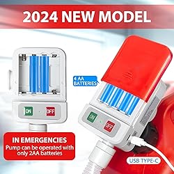 - Battery Fuel Transfer Pump with Auto-Stop Sensor and Leak Protection, 3.2GPM, AA Battery Powered and USB Type-C, 51'' Hose and 4 Gas Can Adapters, Fast and Safe Portable electric Gas Pump for Gas can, for Oil, Diesel and Gasoline etc.