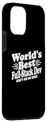 Funny Full-Stack Developer graphic featuring the phrase "World's best Full-Stack Dev (don't ask my boss)". Full-Stack Developer design for IT professional, programmer, or coder boyfriend, husband, dad, uncle or son. Two-part protective case made from a premium scratch-resistant polycarbonate shell and shock absorbent TPU liner protects against drops Printed in the USA Easy installation