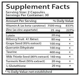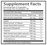 EYE VISION NATURAL COMPLEX: Our powerful natural vitamin and herbal complex designed to support a maintain vision and protect eyes against oxidative stress, which can damage the eyes over time. This advanced formula combines the natural benefits of Vitamin A, Lutein, Bilberry Fruit, Grape Seed, Milk Thistle, Turmeric Root with a blend of potent ingredients known for their properties. EYE VISION SUPPLEMENT WITH VITAMIN A: It is hard to maintain vision, Vitamin A supports the functioning of the retina and helps in low-light and color vision. Combined with Lutein, it provides protection against stress, which can damage the eyes over time. EYE VISION SUPPLEMENT WITH LUTEIN: As a powerful antioxidant found in the eye, Lutein plays a crucial role in filtering harmful blue light and protecting against damage. By accumulating in the retina, Lutein may help maintain healthy eyesight. EYE VISION SUPPLEMENT WITH BILBERRY FRUIT: Renowned for its antioxidant properties, Bilberry Fruit extract supports vision by protecting the delicate structures of the eye from stress. EYE VISION SUPPLEMENT WITH GRAPE SEED: Extracted from the seeds of grapes, Grape Seed is a potent source of OPCs. Grape Seed extract supports optimal visual and reduces the risk of eye problems. Combined with Vitamin A, it provides comprehensive antioxidant protection, supporting and maintaining sharp vision. EYE VISION SUPPLEMENT QUALITY ASSURANCE: Our Premium EYE VISION SUPPLEMENT is made with the high-quality ingredients, Vegan, Non-Gmo, Gluten-free. This solution is safe and effective for your wellness. Manufactured in an NSF certified and GMP compliant facility, SWAN LIFE ESSENTIALS ensures strict adherence to quality standards throughout the production process.