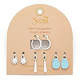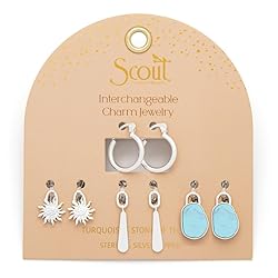 ✧ STYLE - 5/8" Diameter hopps with six charms. ✧ MATERIAL - Semi-precious gemstone charms and Sterling Silver dipped brass. Hypoallergenic. Nickel and Cadmium Free. ✧ STONE - Turquoise | Stone of the Sky ✧ FASHIONABLE GIFTS - Presented on a card with gold foil and discription of the stone meaning. Perfect for people who love accessorizing with fashion earrings. A wonderful gift for birthdays, anniversaries, graduations, Mother's Day, or just for friendship ✧ SUPPORT WOMEN - Give back to Women with Scout Curated Wears. We donate 10% of net profits to causes that support women and celebrate charitable partnerships with multiple organizations including Dress for Success, Safe Passage, The Love Land Foundation and The Care Center