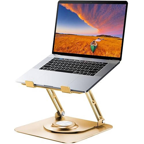 LOXP Adjustable Laptop Stand, Computer Stand with 360 Rotating Base, Ergonomic Laptop Riser Mount for Desk Foldable Protable Computer Desk Fits with MacBook Pro Air (10-16") - Gold