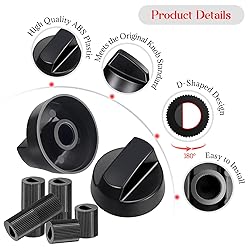 Package includes: You will receive 4 pcs replacement black oven knobs and 12 oven knob adapters (including 4 long size and 8 short size adapters). The outer diameter of the control button is 1.54 inches/3.9 cm, and the inner diameter is 0.43 inches/1.1 cm; The stove knob comes in a variety of adapter sizes and is abundant in quantity, making it easy to install on different interfaces to meet your daily needs. Adapter size: There are 12 pcs adapters in the package, including 4 pcs long adapters and 8 pcs short adapters; The inner diameter of the long adapter is approximately 0.8 cm/0.31 inches, and the height is 2.6 cm/1.02 inches; The inner diameter of the short adapter is approximately 0.6 cm/0.24 inches, and the height is 1.4 cm/0.55 inches; Check if your stove or oven size matches before purchasing High quality and durable materials: The control knob is made of high-quality ABS material, which is sturdy, durable, heat-resistant, not easily damaged, and has a long service life. It is a good choice for replacing rotary buttons in daily life, meeting replacement needs Easy installation: you only need to select the same size as the inner diameter of Oven, Stove and Range and the corresponding adapter, and then press the rotary button into the oven or oven. This is very simple and saves time and effort. Note: Please turn off the power before installation. Wide application: Our control buttons have high compatibility and are suitable for most brands of stoves and ovens, as well as for RVs, camping appliances, and more. Attention: Not suitable for barbecues or heaters