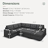 【Sectional Sleeper Sofa Bed】Invisible pull-out bed saves space and can be easily converted between sectional sofa and sleeper sofa. U shaped couch is designed to pull out the middle section into a sleeper couch, which allows for maximum utilization and provides you with a place to rest 【Large Storage Capacity】The sectional couch pullout bed is designed with storage space and can be easily accessed by lifting the cushion. Larger storage space keeps the sofa clean and tidy, making it more comfortable to sit 【Sturdy Frame】The sleeper sofa is wrapped in a sturdy frame and encased in springs that can support up to 6 people at a time. Comfortable and soft backrests and cushions help to relieve pressure and relax your body 【Easy to Assemble】 This sectional sleeper sofa bed is easy to assemble and requires two people to put together. Provide large space for your movie night and enjoy moments of conviviality with family and friends 【5 Cartons】 Sleeper sectional couch consists of 5 boxes,may arrive at different days. The instructions are put in Carton E for you. It is easy to install the sofa according to the instructions