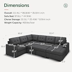 • High elastic cushions and backrests provide enough support to relax your shoulders and back. Comes with installation instructions for your use, easily assemble this sofa bed in 30 minutes. Supported by sturdy brackets, this sectional sleeper sofa easily converts into a spacious sleeper bed, providing ample room for your family's movie nights. Alternatively it can be used as a sofa bed in the living room or bedroom. Two storage spaces are provided for quilts, pillows and household items.
