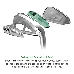 Enhanced Speed and Feel. Elyte X Irons feature the new Speed Frame construction, which connects the body to the topline, allowing for stiffness in the body and flexure in the face for fast ball speeds. The Speed Frame also dampens vibrations allowing for a crisper sound and feel. A Sole Built for Speed and Forgiveness. The tri-sole design features three distinct sections to ensure fast, smooth turf interaction. A sharper leading edge and trailing edge chamfer allow for efficient entry and exit, while the mid-section offers enhanced forgiveness for consistent results from a variety of lies. Ai 10X Face Provides Optimal Distance, Control, and Launch. The new Ai10x Face delivers 10x more control points than the Ai Smart Face. With more precise Ai, the Ai10x Face produces exceptionally fast ball speeds, tight dispersion, and optimized launch across the face. Confidence-Inspiring with Maximum Forgiveness. The Elyte X model utilizes a larger profile and cavity-back construction to provide maximum forgiveness. With increased offset, sole width and topline thickness, the X model is perfect for golfers looking for distance, maximum forgiveness, and easy launch.