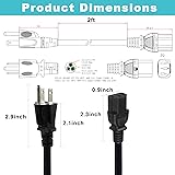 2PACK PC Power Supply Cable - 2FT Black, 3 Prong TV to Computer Monitor Power Cord, NEMA 5-15P to C13, 13A,125V,16AWG for Computer, Printer, Radio, Monitor, Speaker