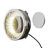 Microscope polarized led ring light lamp, anti-glare illuminators source, double polarizing lens interaction, remover glare restoring colors. Built-in polarizer and analyzer, reducing glare and reflections when viewing metallic parts with the stereo microscope. Ordinary microscopes become high-end in seconds, rotatable analyzer 360°, polarizer drops into the slot and is removable. 96 LED lights offer cool, bright illumination, utilizing the interaction between angle LEDs and two polarizers to improve light quality. Compatible with multiple models, it is often used in monocular or type microscopes.