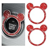 Wevdn 2 PCS Bling Car Engine Start Button Cover, Rhinestone Ring Start Button Cover Sticker, Little Cute Key Ignition & Knob Ring Decoration, Sparkling Car Interior Accessories for Women (Red)