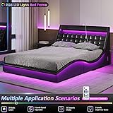 【Built-in Two Bluetooth Speakers Beside the Bed】 Our led bed frame is embedded with Bluetooth speakers on both sides, which can relax both body and mind. Simply tap the Bluetooth link on your smartphone to immerse yourself in wonderful music. Whether you prefer soothing classical melodies or nature inspired sounds to lull you to sleep, seamless Bluetooth connectivity ensures that your auditory preferences effortlessly accompany you to sleep. 【Unique Wave-Like Curved Design for Style & Safety】 The pu leather upholstered platform bed frame boasts a modern, undulating curve design paired with softened, rounded corners, eliminating sharp edges for a safer environment. This thoughtful construction provides a gentle, cozy feel, ensuring protection for you, your little ones, and pets from accidental knocks. Enhanced by a sunken mattress placement—approximately 7 inches from the wooden slat support—it effectively secures your mattress, promoting undisturbed rest. 【RGB LED Light Strips for Bed Frame】 Our black bed frame displays RGB light strips that are artistically embedded along the headboard and extend to all three bed sides. You can customize the atmosphere with a 17 key wireless remote control, adjust lighting intensity, rhythm, and transitions between dynamic or static scenes. This feature rich lighting can change your nighttime environment, inject personality into your living space, and enrich your nighttime experience. 【Charging Station Integrated within Headboard】 Elevating convenience, our bed frame incorporates a charging station at the headboard’s apex, featuring 2 AC outlets, a USB port, and a Type-C port. This setup empowers simultaneous charging of up to four devices, liberating you from cable length constraints during sleep. Enjoy uninterrupted reading or gaming sessions on your bed, free from battery anxiety. 【Ergonomic PU Leather Headboard for Ultimate Comfort】 Crafted with attention to detail, the upholstered headboard marries a high-density sponges core with a full PU leather exterior, achieving the perfect blend of plush comfort and lasting resilience. It offers gentle, supportive cushioning while its easy-to-clean surface ensures enduring freshness and utility. The meticulously designed angle between the headboard and bed optimizes. 【Music Sync Mode Makes a Perfect Bedtime】Our modern bed frame can seamlessly connect to your smartphone, allowing you to enjoy your favorite music or nature sounds effortlessly. Whether you prefer soothing classical melodies or calming natural sounds to lull you to sleep, this integrated audio system ensures your auditory preferences are met without any hassle. Relax and drift off to sleep with the perfect soundtrack every night.