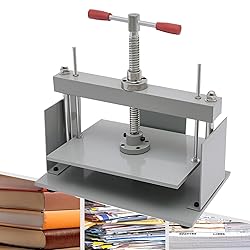 【Effective Working Area】: Our powerful paper flattener is commonly suitable for A3/A4/A5/sized paper. Documents can be flattened more efficiently by large working area and 5.7"/145 mm flattening thickness. With the rotary handle, elongated nut, bold screw rod, and thickened plate, the pressure can reach 3306 lbs /1500 KG. 【Three-sided baffles】: Our press file adopts three-sided baffles, which can effectively prevent the paper from slipping and ensure a smooth and superior flattening experience with enhanced stability. 【Sturdy Material】: This commercial manual paper press is made of thickened steel, the main screw, handle and guide rods on both sides are all made of 100% stainless steel, which improves the flatness and will not deform in the long term use. 【Stable Structure】: Non-slip foot pads reduce damage on the tabletop and increase friction to make the bookbinding tool more stable. On the other hand, two balance rods and 0.3"/8 mm baseplate thickness facilitate it to bear more substantial pressure evenly. 【Application】: The paper press is very suitable for embossing banknotes, documents, books, stamps, banknotes, invoices, account books, finalization and other processes. Simple use and reliable performance. It is an indispensable office tool for sorting data