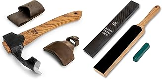 Woodworking Adze with Curved Blade Excellence: The adze features a distinct curved blade design making it the ultimate adze tool for intricate carving, be it bowls, spoons, or ladles, providing exceptional control and precision. Forged Adze Head for Superior Durability: Crafted from robust 1066 high-carbon steel, this durable woodworking adze maintains sharpness even through extended use, ensuring effortless carving strokes every time. Bowl Adze Woodworking Tool for Stable and Exquisite Carving: The adze boasts a securely fixed head to ensure unwavering stability. This feature provides precise control and confidence, allowing woodworkers to tackle all the tasks with ease. Leather Strop for Knife Sharpening: for beginners and professionals that like honing to keep woodcarving tools razor sharp. Use both sides of the carving knife strop to maintain a needed cutting edge. Knife Sharpening Kit with Stropping Compound: polishing compound included in this knife stropping kit, so you can start sharpening your knives or other woodcarving tools immediately. The knife sharpening strop with honing compound is suitable for all types of knives.