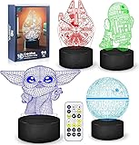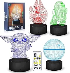 - The 3D Lamp is not only a creative gift for children but also a soft night light or an ideal decorative lamp for bedroom and study. The 3D effect will attract everyone's attention, it is a cool birthday, holiday, Christmas, anniversary gift for star wars fans, kids, friends, boys, girls, men and women. Note: The 3D Night Light is made of 2D acrylic plates, but it shows an incredible 3D stereo pattern and light effect. Voltage: 5V Product Power: 2W Material: Plastic, acrylic Power Supply: USB cable (include) / 3* AA batteries (NOT INCLUDE) Package List: 4 *Acrylic Plate; 1 *ABS Base; 1 *Remote Control; 1 *USB Cable; 1 *User Manual