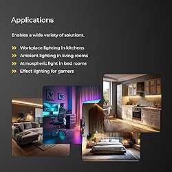 Supports numerous types of LED strips: RGB, RGBW, RGB+CCT, CCT, and single color. Individually addressable LED strips with the chipset WS2812, WS2812B, TM1814, SK6812 can be controlled. The USB-C interface allows free configuration of the Matter LED controller. The type and pin assignment of the LED strip can be adjusted. Certified according to Matter WLAN standard 2.4GHz. Compatible with Google Home, Apple Homekit, Amazon Alexa, Home Assistant Works in the voltage range 5V DC, 12V DC, 24V DC. With a maximum current of 6A, it can supply 30W, 72W and 144W.