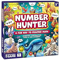 Number Hunter Math Board Game – Addition & Subtraction Games for Kids Ages 4-8 – Fun Educational STEM Game for Kindergarten, 1st-3rd Grade, Homeschool & Family Game Night