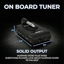 LEVEL UP YOUR TONE: Get 25 premium amp models and 25 studio-style effects packed into a compact guitar headphone amp-perfect for clean tones, heavy gain, and everything in between STREAM AND PLAY ALONG: Practice with your favorite songs or YouTube guitar lessons using Bluetooth audio sync. Just plug in wired headphones and enjoy silent sessions with full band sound APP+ 100 PRESETS: You can edit and save up to 100 tones with the Fender Tone app. Built-in tuner, display, and global EQ make it easy to shape your sound fast RECHARGEABLE BATTERY: The rechargeable lithium-ion battery offers 4+ hours of uninterrupted playtime, making this Bluetooth guitar practice tool perfect for touring, busking, or late-night sessions EVERYTHING IN ONE BOX: Austin Bazaar bundles your Mustang Micro Plus with must-have accessories to get you started. This bundle includes an Austin Bazaar Exclusive 12-Pack of Picks so you’ll always have spares on hand, and an Instructional DVD to help you learn faster and make the most of your new gear