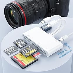 【7-in-2 SD Card Reader for iPhone USB C】The sd card adapter features dual Lightning+USB C ports and is compatible with virtually all smart devices, from the iPhone to the USB-C.The sd card reader usb c are designed with SD/Micro SD(TF)/CF/MS/XD slots, as well as USB3.0 and USBC sockets to meet your needs for almost any memory card. In addition, this type c memory card reader can read and write 3 different devices at the same time, which greatly improves work efficiency. 【Unique USB-C with Three Functions】The USB C port of this usb c sd card reader combines three functions: charging + data transfer + headphone jack, one port solves all problems. With this lightning to usbc adapter, you can easily transfer photos, videos and files from your phone while charging, and the high-speed bi-directional transfer allows you to effectively manage data between your smartphone and other devices. 【5Gbps Super Speed Transfer】Both the USB C and USB 3.0 ports of the usb c memory card reader support high-speed data transfers of up to 5 Gbps, allowing you to transfer large amounts of photos and files in seconds and avoid long wait times. Our lightning to sd card reader supports fast transfer of standard photo formats including JPEG, RAW, and SD and HD video formats. The sd card adapter to iphone is ideal for videographers. 【Wide Compatibility】This iphone sd card reader works with USB-C and iPhone port smartphones and pads such as iPhone16/15/14/13/12/11/XR/MacBook Pro/Air, iPad and other USB-C enabled devices. The card reader for camera memory card supports a wide range of memory cards, including SD/SDHC/SDXC/MMC/RS-MMC/Micro SD/Micro SDHC/Micro SDXC cards. 【 Plug and Play】The lightning to sd card reader is plug-and-play with no additional drivers, software or networking required. With this sdxc memory card reader, you can easily transfer photos, videos and files from SD/TF/CF card to USB C or Lightning devices at high speed. The sd card reader for iphone allows you to share your happiness with your family and friends in real time anytime, anywhere. 【Compact Flash Card Reader】The Multi-Port 7-in-2 iPhone & USB-C SD card reader is a photographer's best friend, with a friendly, compact port design that lets you instantly see what's in the shot. Small and lightweight, this SD/TF card reader adapter is easy to carry around, especially for outdoor activities and traveling. The digital camera adapter iphone is also suitable for all kinds of car camera/trial camera/digital camera memory cards. 【Good Quality&Worry-Free Warranty】The Multi 7-in-2 memory card reader for iphone sturdy exterior and heat-resistant connectors ensure high data transmission efficiency and ultimate durability for the lightning/USB C/Micro SD card adapter. The apple sd card reader usb c is a great addition for workers on the go. And we provide 12-month worry-free service and warranty for guarantee if you have any questions, we will get you back within 24 hours.