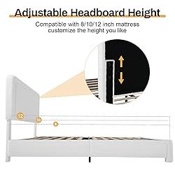 【Fluffy Boucle Fabric】The platform bed frame is upholstered in a cloud-like terry fabric and premium foam fillings, which are soft to the touch and provide better back support. Modern boucle bed frame fills your home with warmth and calm. 【Curved Anti-collision Design】Featuring a simple stylish curve-shaped and line design on the headboard and footboard, the upholstered bed frame reduces injuries caused by everyday bumps and is suitable for kids and adults. 【Sturdy Construction】This cloud bed frame is constructed with sturdy legs, a support metal frame, and solid wood slats, greatly enhancing the sturdy stability of the bed, equipped with quiet foam that is designed for noise-free sleep. 【Adjustable Headboard】The headboard of the cream bed frame has 3 height levels which can accommodate 8-12 inches thick mattresses. Soft boucle fabric adds a touch of warmth to your bedroom, lying on the bed like sleeping on a soft bed frame. 【Easy to Assemble】Lifetime warranty! Velcro connects the slats for easy assembly and reduces any noise. We have the necessary assembly tools and clear assembly instructions, making the installation of the bed frame with adjustable headboard faster.