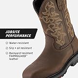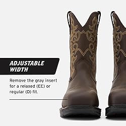 WORK BOOT - The 10” square toe Vastbinder Welted (Comp Toe) provides superior comfort, performance & breathability. Goodyear welt construction, nano composite safety toe & FARMGUARD leather make it durable enough to tackle the toughest conditions. PERFORMANCE - Non-metallic composite safety toe offers a great fit, does not conduct heat/cold & is significantly lighter than steel. Electrical hazard (EH) protection helps prevent shock from accidental contact with live electrical circuits. COMFORT - BRUNT Triple Layer Cushion insoles includes a nonstick top layer, a memory foam midlayer, a cushy bottom layer & an anti-odor treatment. BRUNT Polyurethane (PU) midsole is longer lasting & provides superior support compared to EVA midsole. BREATHABLE & DURABLE - BRUNT’s barnyard-resistant FARMGUARD leather keeps your feet dry. Breathable construction reduces weight and keeps your feet cool. Ultra-durable Goodyear welt construction is resoleable to extend the overall life of the boot. ADJUSTABLE - With the Adjustable Width System, remove the gray insert to change the boot from a regular fit (D) to a relaxed fit (EE). Includes pass-through or wrap-around lace hooks with heavy-duty eyelets & reinforced stitching at stress points. SAFETY - Meets ASTM F2413-24 M I/75 C/75 EH standards, ASTM F2913-19 SATRA non-slip testing standards, and ASTM F1677-96 Mark II non-slip testing standards. Outsole and midsole meet ASTM D471-06 903 oil and isooctane chemical resistant standards.