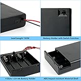 • Description: 6V Black Battery Holder Storage Case Box for 4PCS AA Battery with ON OFF Switch Perfect for DIY enthusiasts and electronic hobbyists, this battery holder ensures your projects are powered safely and effectively. Battery Type: 1.5V AA Battery (Batteries are not included) Voltage: 6V(1.5x4) Feature: with wire leads, with ON/OFF switch, with cover Wires: Black + Red, 150mm (5.9 inch), Tinned End Package includes: 4 x 4 slot AA Battery Holders