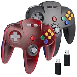 KIWITATA 2 Pack Wireless N64 USB Controller for Switch Games, 2.4ghz Rechargeable Remote Wireless Joystick Controller for Switch/Switch Lite/Switch OLED, MAC, PC Windows 7,8,10,11 Clear Red & Black