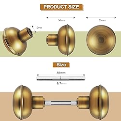 Old style door knob replacement set, easy to install, no professional door fitter required DOOR KNOB: Designed for doors that are 1-3/8 in. to 1-3/4 in. thick, used for interior doors such as bedroom, bathrooms and other interior door DOOR KNOB PLATE: Features a 11/16 inside diameter x 2-1/2 inch outside diameter with 2 inch mounting holes on center that are 1/8 inch If you have any questions about the door knob, please feel free to contact us (via Amazon)