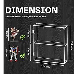YUNEASELF Acrylic Display Case - 2 Layer Clear Display Case for Funko Pop Action Figures - Wall Mounted or Desktop Dustproof Display Cabinet Shelf for Labubus Collectibles Mini Toys