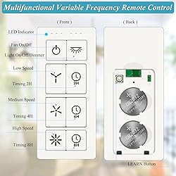 3 Fan Speeds Remote Control & Timing --- Tailor your airflow to your exact preferences by choosing from 3 fan speeds for the utmost comfort. 2-8H timing function ensures your peaceful sleep Remote Control with Light Dimmer --- Set the desired brightness of your light to curate the perfect ambiance for any occasion whether it's a cozy night in or a festive gathering Ceiling Fan Remote Replacement --- Ceiling Fan Remote Controls Compatible with Hunter, Hampton Bay and Harbor Breeze FAN-53T, FAN-35T, UC7078T Fan-HD CHQ7078T L3H2010FANHD L3HFAN35T, L3HFAN35T1, FAN-HD5, Replacement for FAN-11T, KUJCE9103 Powerful and Durable Receiver --- The rated power of the receiver is 240W, which far beyond the general carrying power capacity, it allows you to access more light bulbs, greatly increase the life of the receiver. This receiver uses 2 upgraded relays, with the new component the dimming function of the relay is better than the thyristor Easy Installation --- It is easy to installation. Just need to use the LEARN key to match remote and receiver. NOTE: Please check the dimension of receiver carefully to make sure there is enough space in the canopy of your fan to cover the receiver